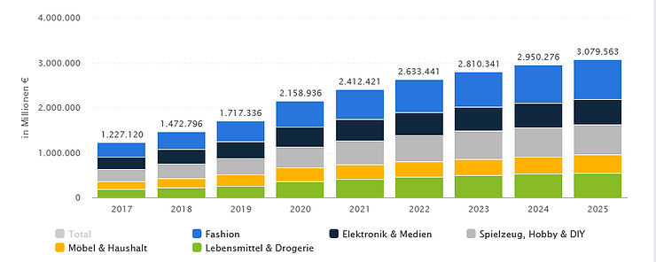 Alle Information aus dem Abschnitt wurden von ibi research entnommen: https://ibi.de/aktuelle-meldungen/prognose-e-commerce-anteil-am-einzelhandelsumsatz-wird-bis-2025-nochmals-deutlich-steigen (Autor: ibi research, abgerufen am: 17.01.2021)